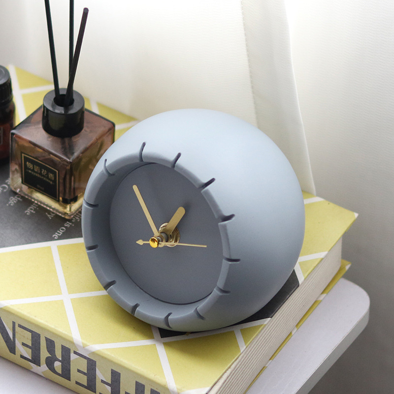 現代北欧の個性的な時計のデスクトップの置物の高級感の顔の価値の創意の客間の寝室の置き時計の時計の装飾品