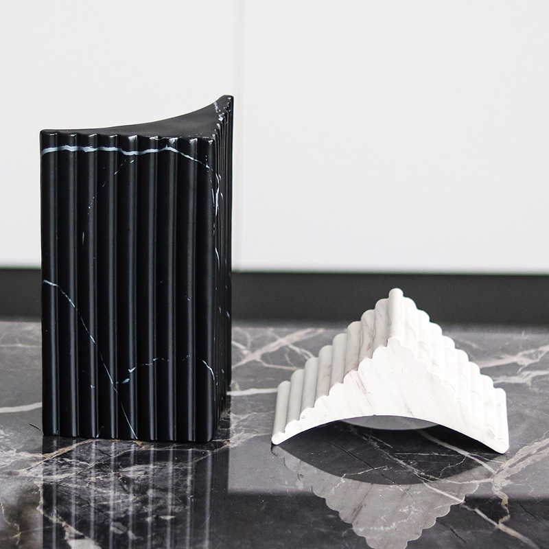現代は大理石の幾何学の抽象的な異形の置物の芸術の高級感の見本の間の書斎の本をまねて飾り物に頼っています。