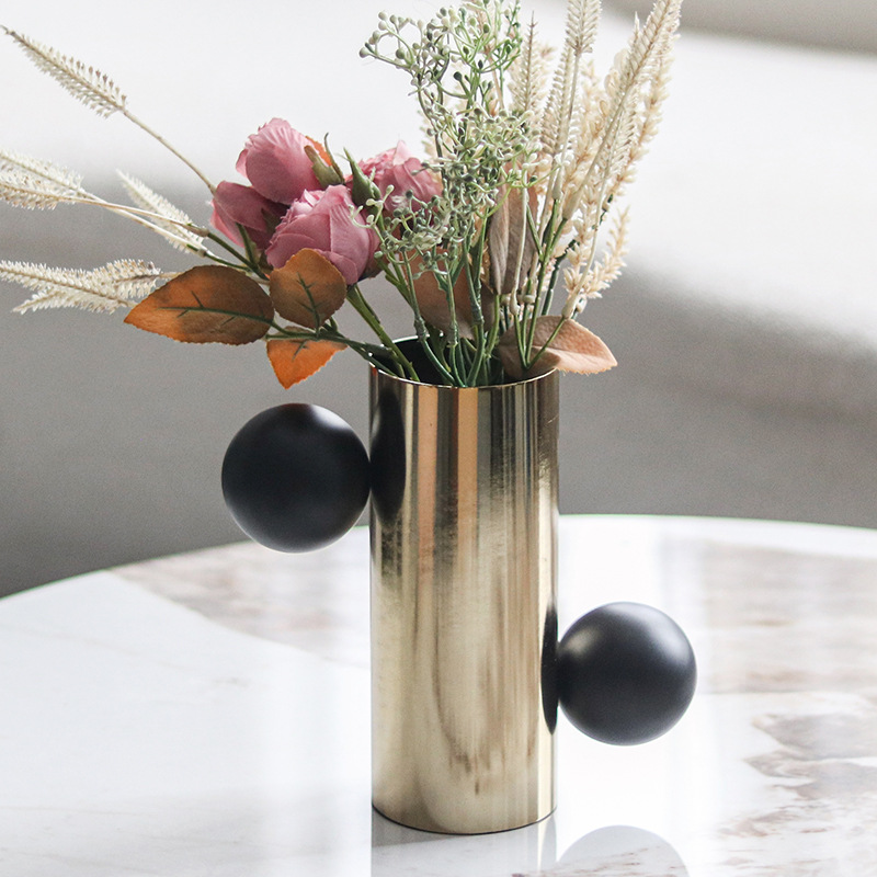 現代見本間珠点金属円形直筒花器置物寝室客間書斎ホテル花瓶装飾品