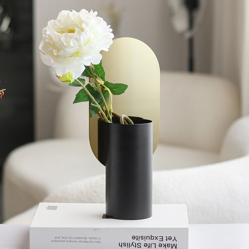 シンプルな幾何学屏風花器の置物の軽い豪華なサンプルプレートの部屋のビルの売り場のホテルの玄関の金属の抽象的な花瓶の装飾品