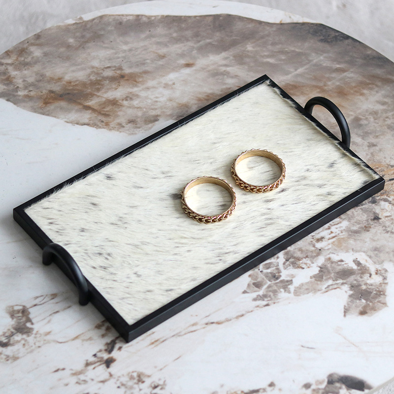 ヨーロッパ式の軽い豪華な馬毛の皮革のトレーの置物の見本の部屋のビルの売り場の柔らかい装飾品の長方形の毛皮の収納盤