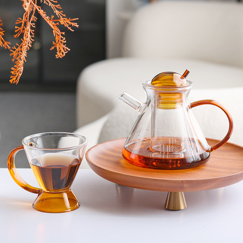 現代のシンプルなガラスティーポットの水カップセットの装飾品のサンプルプレートの間のホテルの売り場のお茶のテーブルのデスクトップの装飾品