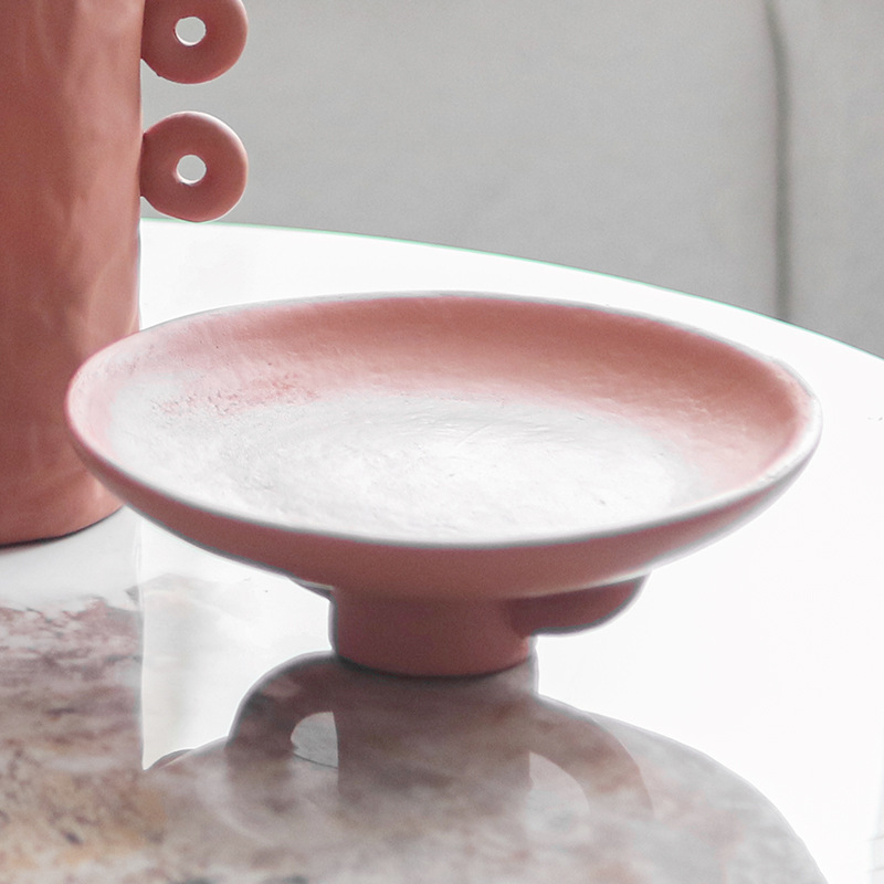 現代の寂しい芸術の円形の果物の皿はお茶のいくつかの食卓の見本の部屋の民宿のレストランのドライフルーツの小食の皿の装飾品を並べます。