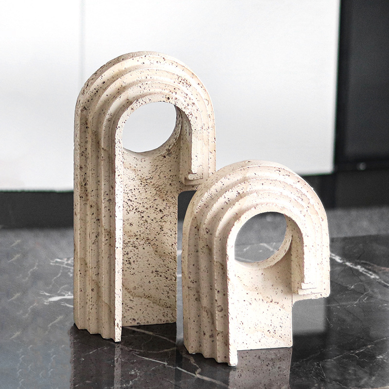 寂しいレトロな洞石の不規則なアーチ型の丸い穴の置物のホテルの玄関の本棚の見本の間の装飾工芸品