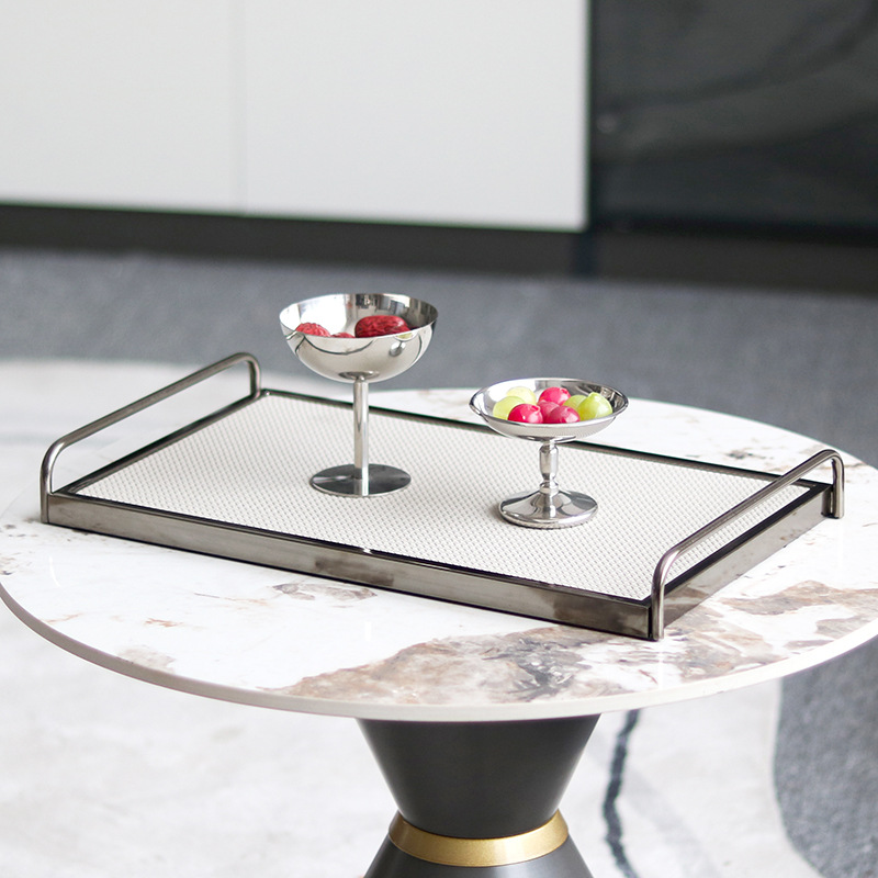 軽豪華皮革高取っ手極簡金属トレー置物見本室販売処ホテルフロントワニ紋アクセサリー
