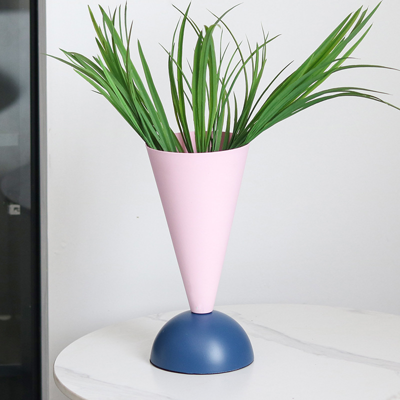 北欧モダンカラー金属幾何学花器置物サンプルハウステーブルテーブルドライフラワー生け花飾り花瓶