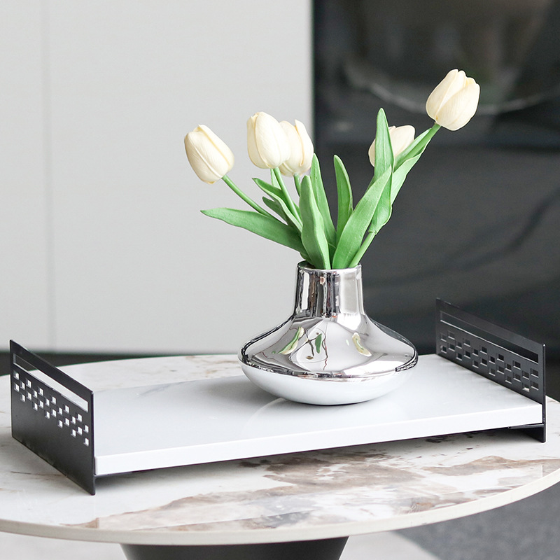 軽くて豪華な大理石のトレーの置物の長方形のアロマキャンドルのアクセサリーの洗面台のシンプルな展示盤の置物の平盤