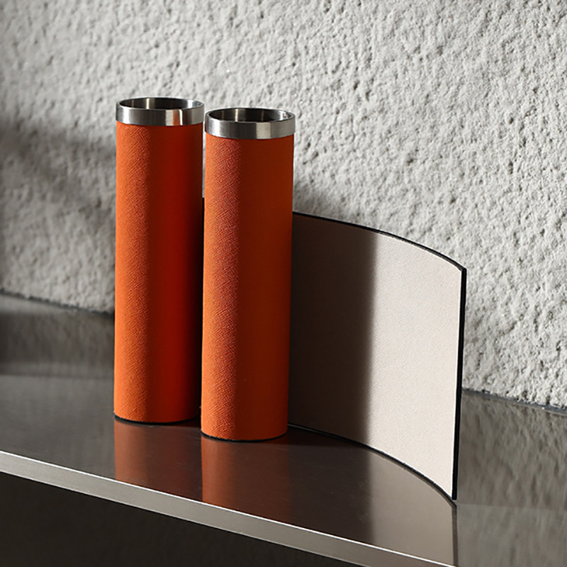 軽豪華創意双管皮革金属花器見本間販売部書斎寝室客間屏風花瓶置物