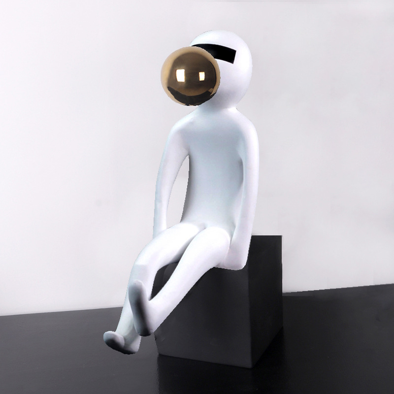 現代の装飾品はシンプルで創造的な気泡が目を覆って座る姿をしている男の子の彫刻のサンプルルームのリビングルームの子供の部屋の柔らかい装飾品です。