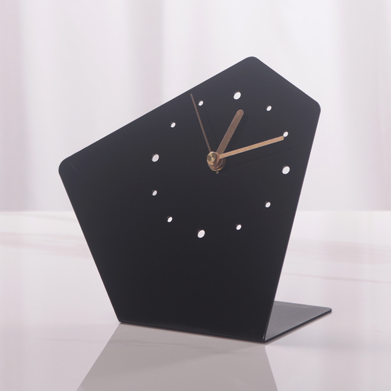現代の軽豪華な不規則な時計の幾何学の置物の書斎の民宿の極めて簡単な見本の間のデスクトップの時計の台の時計の飾り物