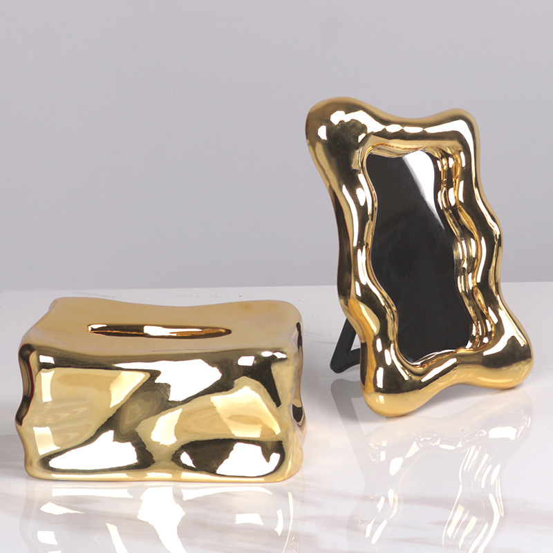 メッキ樹脂置物北欧モダンシンプル氷飾り鏡幾何学デスクトップティッシュボックスセット装飾品