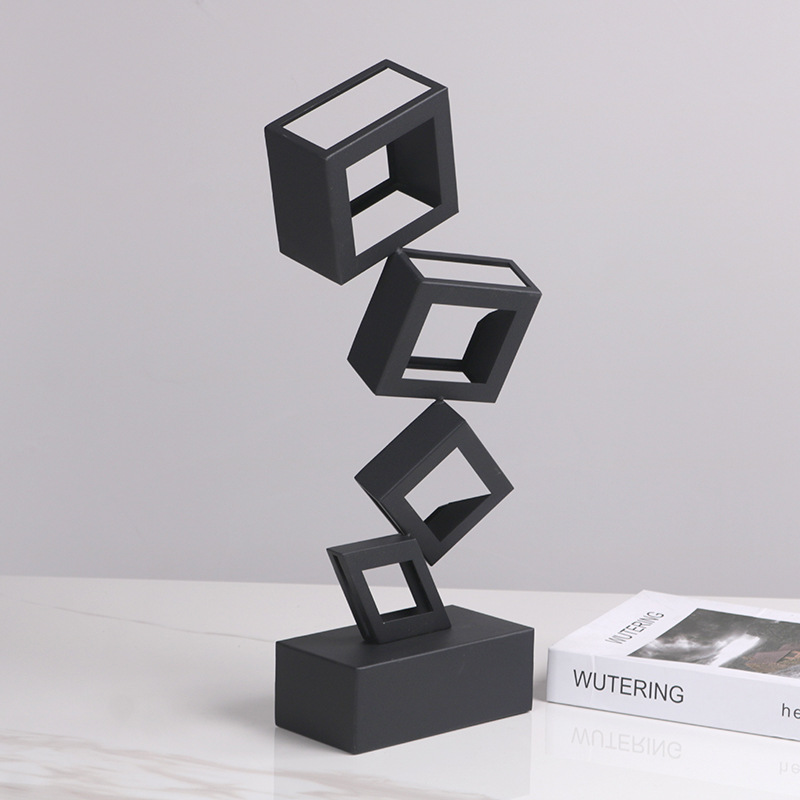 非常にシンプルなブロックが重ねて飾られています。抽象的な芸術品のサンプルプレートの間に飾られています。