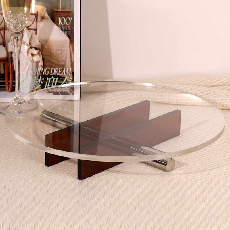 現代の極めてシンプルな透明なアクリルトレイの置物の茶盤のソフトなサンプルプレートの間のホテルの円形の収納盤の装飾品