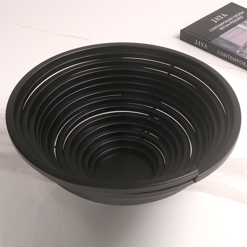 北欧の果物皿現代シンプルな黒色金属螺旋紋円形深盤創意装飾パレット線置物