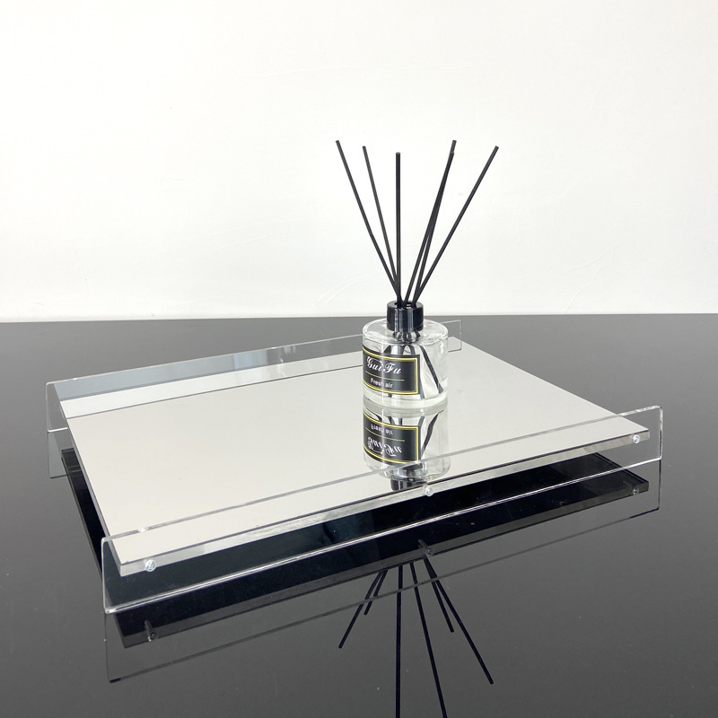 軽くて豪華な極めてシンプルなトレーの金色の銀色のアクリル金属の長方形の収納トレーの香薫の雑物のデスクトップの置物