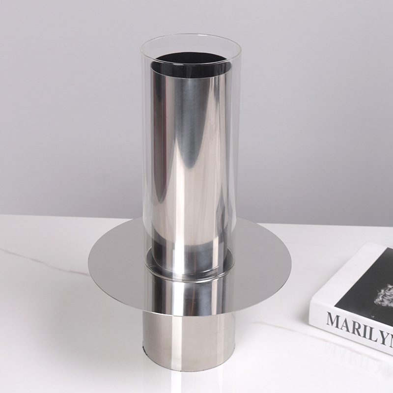 北欧の軽い豪華な銀色の金属のガラスの幾何学の積層の花器の家庭の装飾品のサンプルの板の間の玄関の花瓶の置物