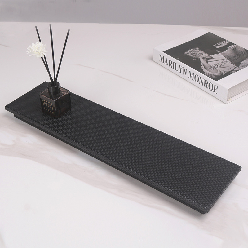 現代のシンプルで豪華な革の長方形のトレーは北欧のサンプルの間の客間のお茶のいくつかの寝室の装飾品を並べて収納します。