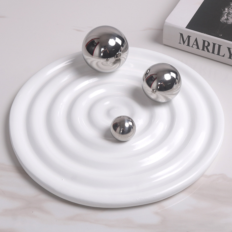現代のシンプルで軽い豪華なボールの波のトレーの円形の収納皿の果物の皿の装飾皿のサンプルプレートの間の装飾品の置物