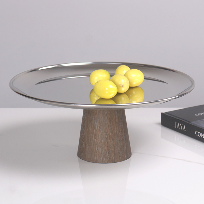 軽い豪華な極簡金属木目の高い果物皿の工芸品はシンプルです。