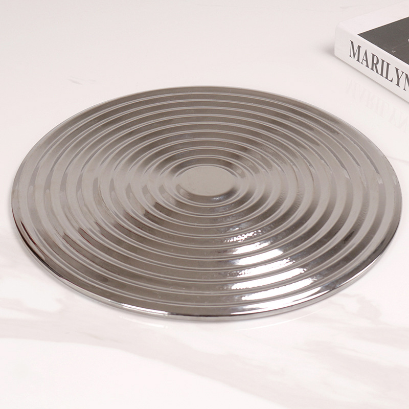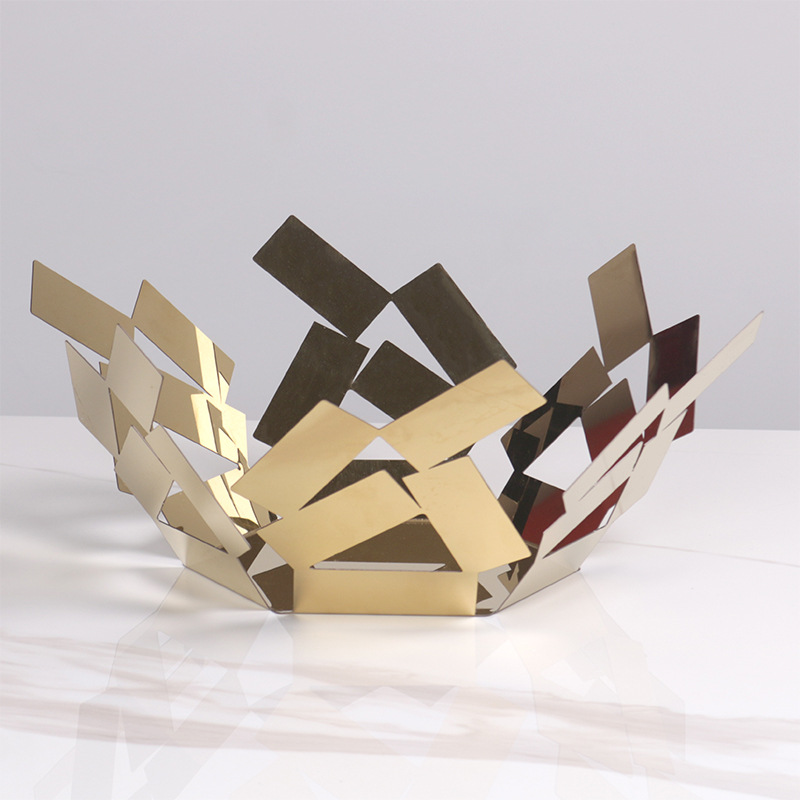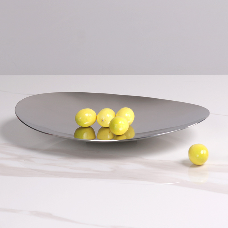 シンプルで現代的な創意ステンレスの果物皿の置物は家庭の客間の食卓のお茶のいくつかの軽い豪華な金属の収納皿を飾ります。