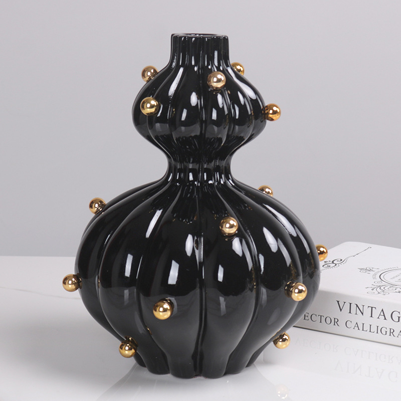 瓢箪の丸い玉の形の花瓶の現代の新しい中国式の見本の板の間の狭い口の花器の軽い豪華な風の客間の玄関の装飾品