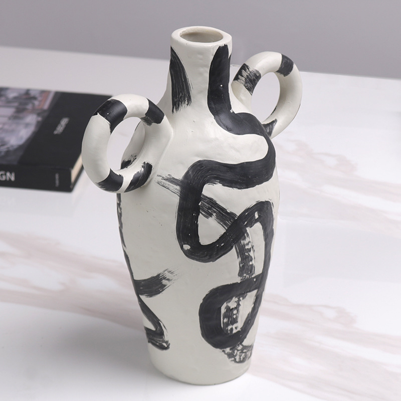 水墨の落書きの双耳の狭い花瓶の置物の客間の生け花の北欧のinsの軽くて豪華でシンプルな芸術の家庭の軟装
