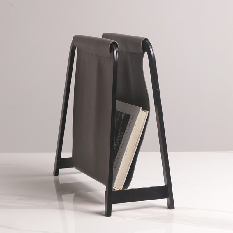 現代の軽い豪華な金属の革の雑誌の棚の書籍の棚の家庭の置物の本棚のサンプルの間のデザイナーの柔らかい装飾品