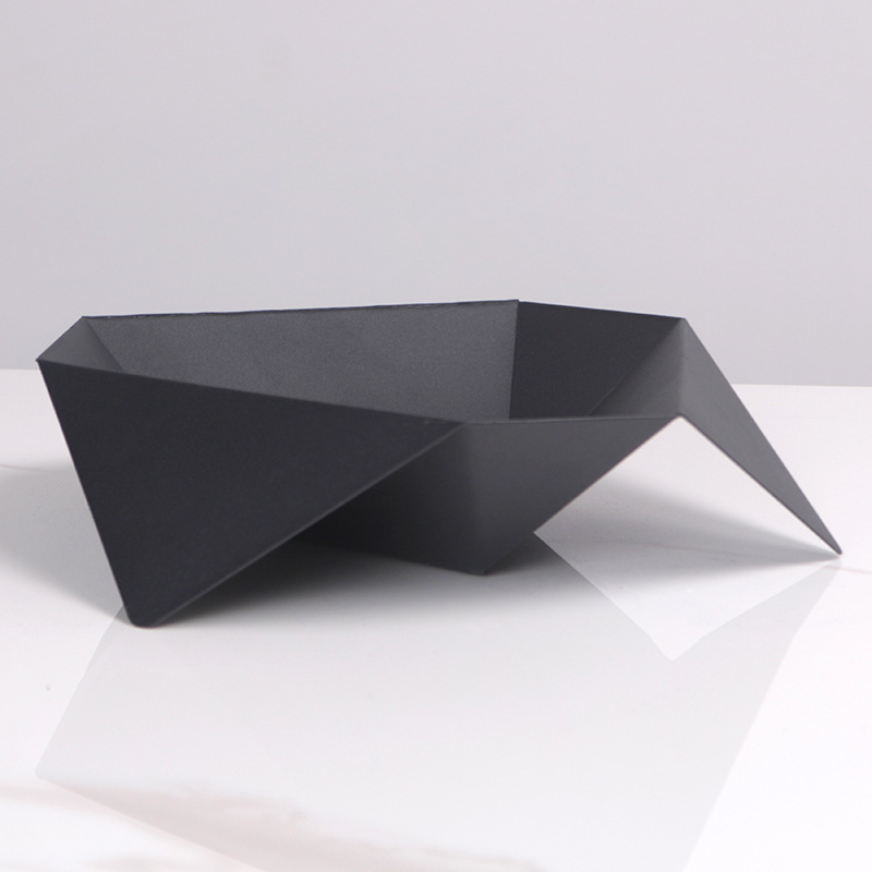 現代の極めてシンプルな黒色の金属の折り紙の果物の皿の見本の部屋の販売所の客間のレストランのお茶のテーブルのトレーの置物