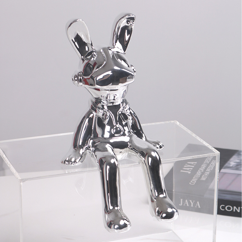 現代の電気めっきの軽い豪華な北欧の座り方の音楽のウサギの置物のサンプルの部屋のビルの売り場の本棚の漫画の柔らかい装飾品