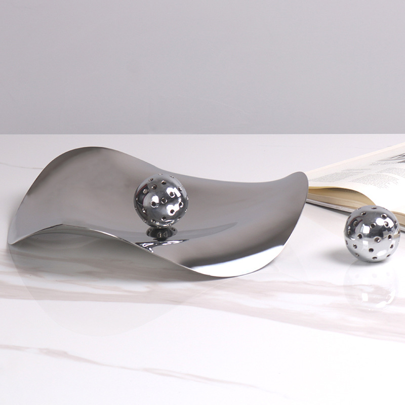 軽くて豪華な風のステンレスの果物の皿はホテルのサンプルの間のレストランのデスクトップの高級なトレーを飾って柔らかい装飾品を飾ります。