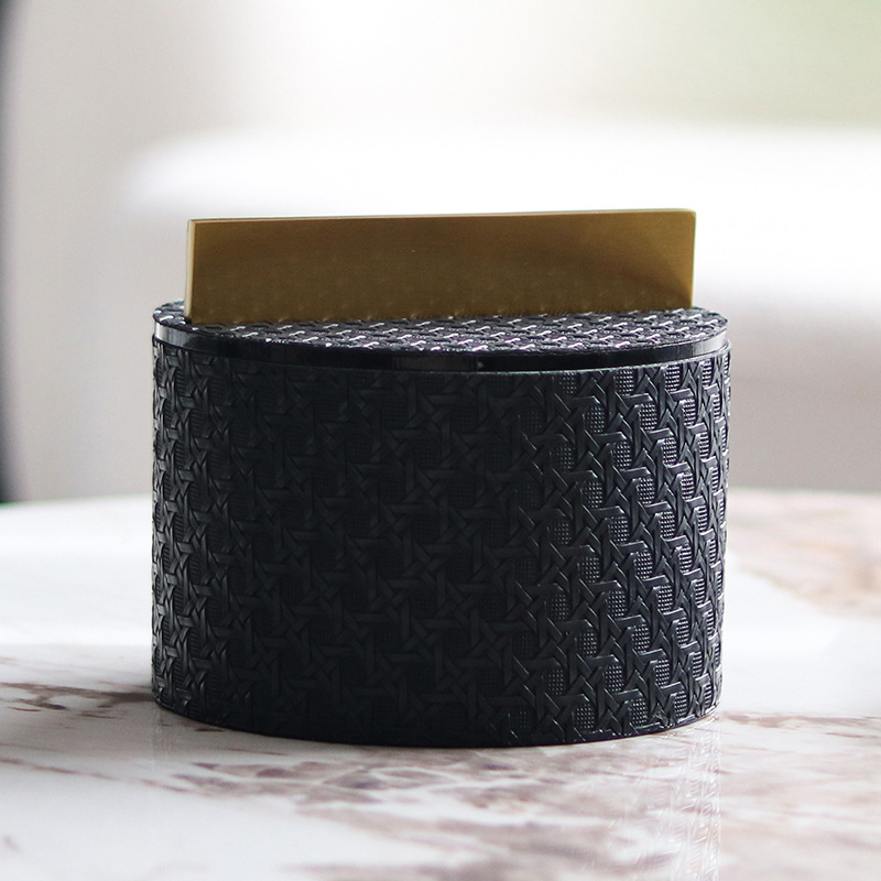 軽くて豪華な置物の金属の皮革の編み物の紋様の円形の貯蔵の箱は装飾の箱のサンプルの板の間の寝室の柔らかい装飾品を収納します。