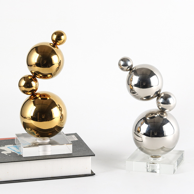北欧の創意的な幾何学の金属の丸いボールの積み重ねの芸術の置物の客間の寝室の玄関の見本の部屋の家庭の装飾品