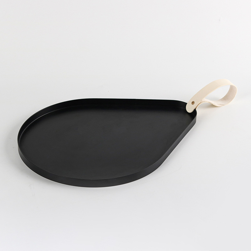 革の取っ手の金属の楕円形のトレーの置物の軽い豪華なサンプルの板の間の創意的な水滴の置物の収納盤の装飾品