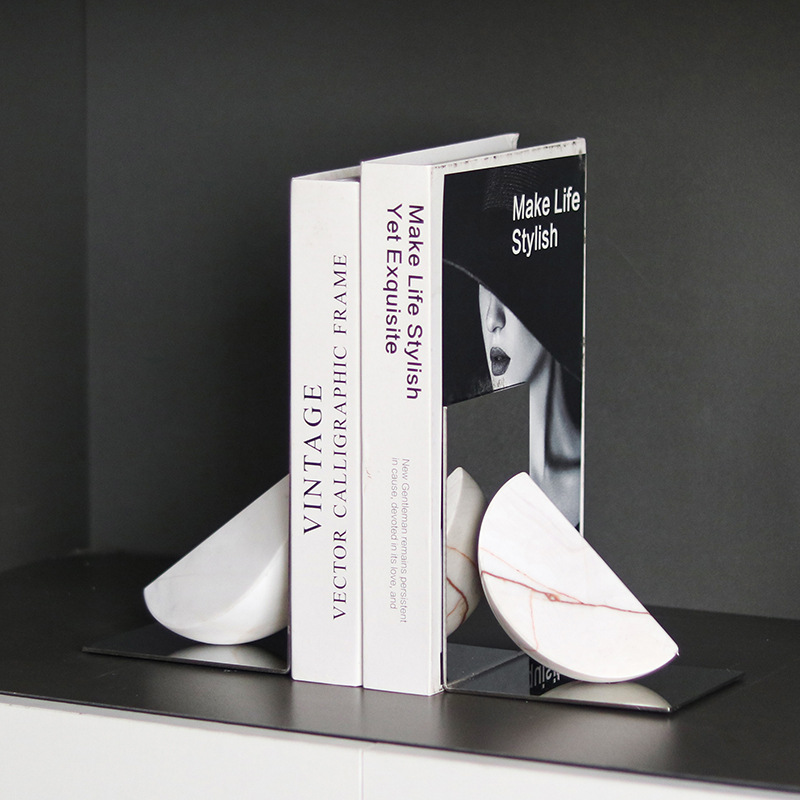 大理石の幾何学の本は本を遮って、置物の北欧の簡単な見本の間の書斎の事務室の家庭の芸術の装飾品に頼っています。