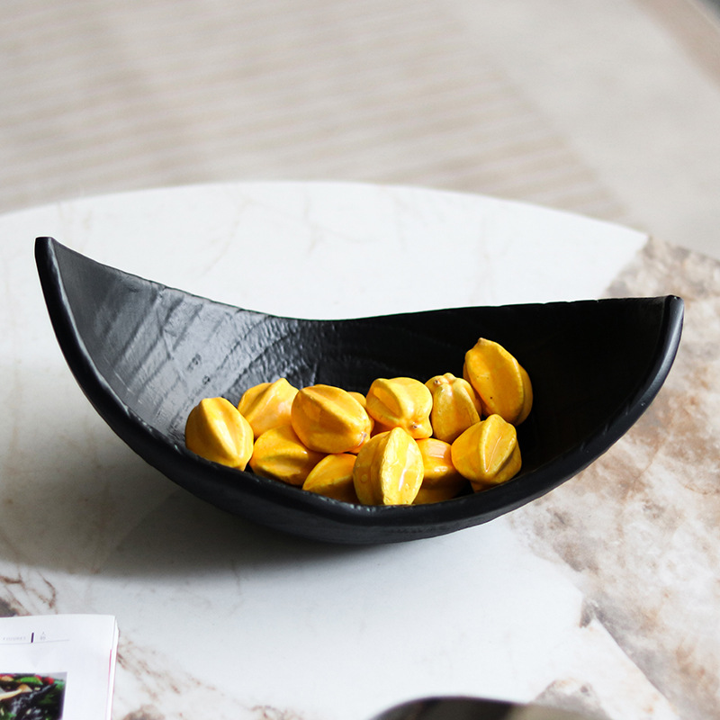 侘び寂び風アメリカン風模造木製フルーツプレート装飾民宿茶室デザイナーアート三日月型小舟収納プレート飾り