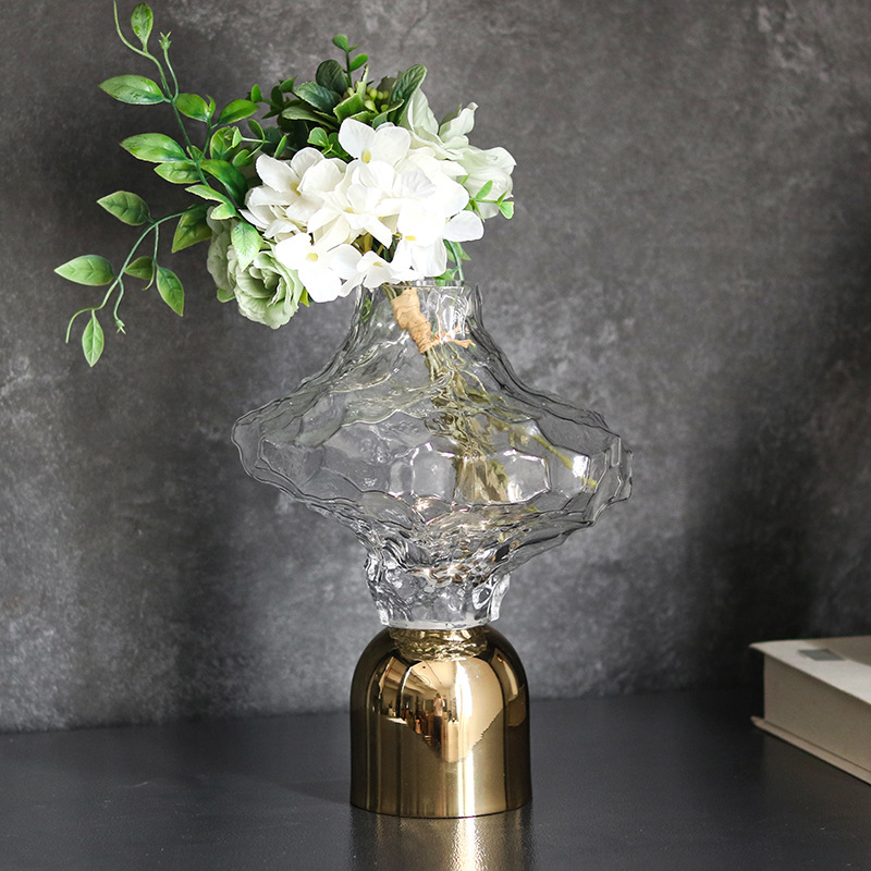 軽豪華芸術円筒ガラス花器置物モデルルームホテル客間家庭金属生け花花瓶装飾品