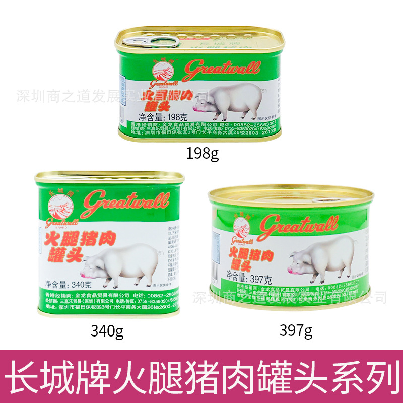 長城ブランドハム豚肉缶詰白豚仔ランチ肉インスタント缶詰屋外198g 340g 397g