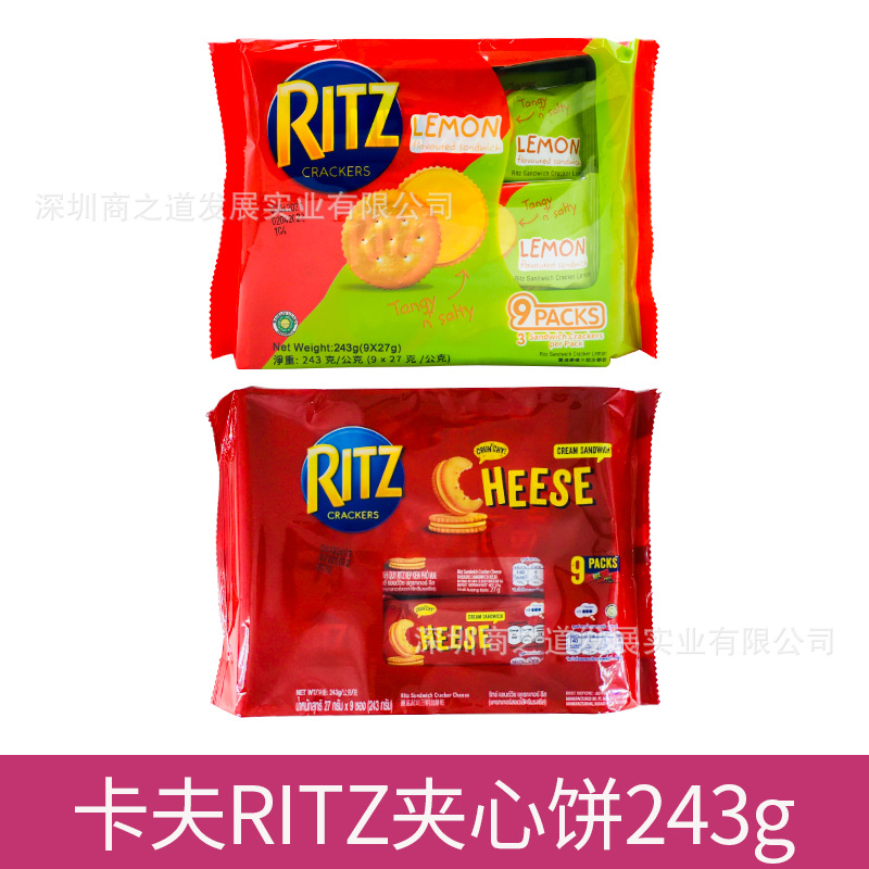 インドネシア輸入カードの夫楽チーズ味/レモン味サンドイッチクッキー9本入り243gフルケース12パック