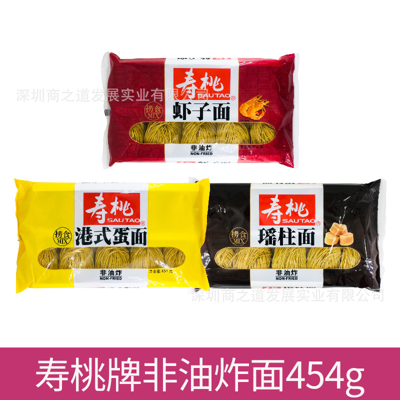 寿桃牌非揚げエビ麺瑶柱麺港式卵麺454g非揚げアルカリ水面朝食インスタントラーメン