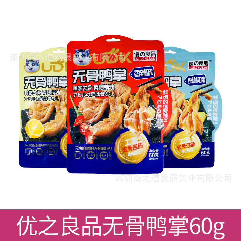 UDK優之良品泡ハロゲンアヒル掌60g香辛料ハロゲンアヒル爪レモン骨なしアヒル足ハロゲン味インスタントスナック