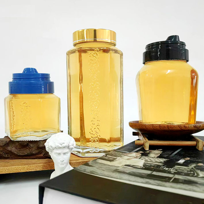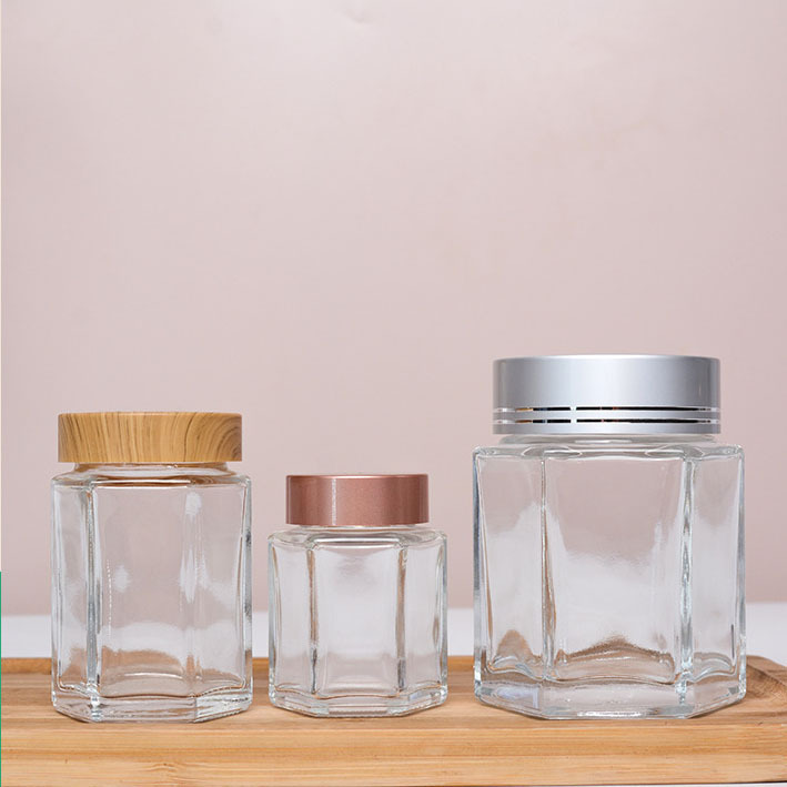メーカー卸売透明蜂蜜ツバメの巣コーヒー豆六角ガラスボトル増粘ガラスボトルキッチン保存瓶