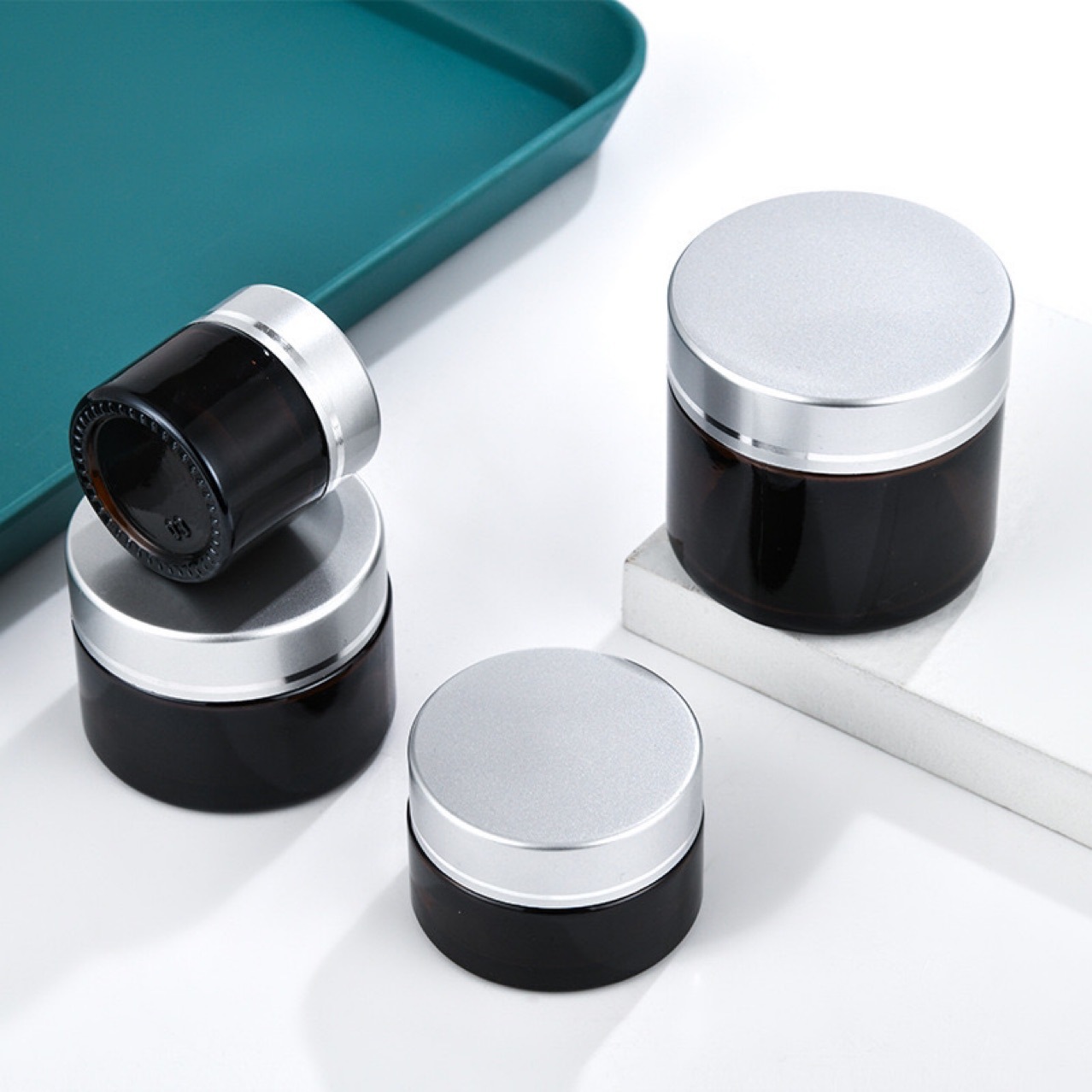 50 グラム包装ボトル遮光ガラスミニポータブル軟膏ボックス蓋付き密封缶空の包装漢方薬粉末クリーム