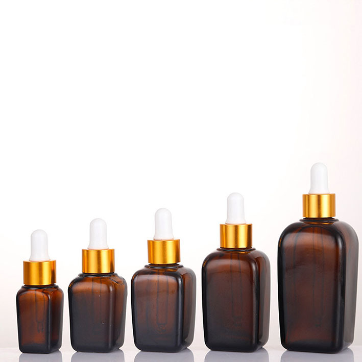 茶色の遮光エッセンシャルオイルボトル、角型乳液ボトル、ガラスドロップスプレーボトル、薬液、抗菌液