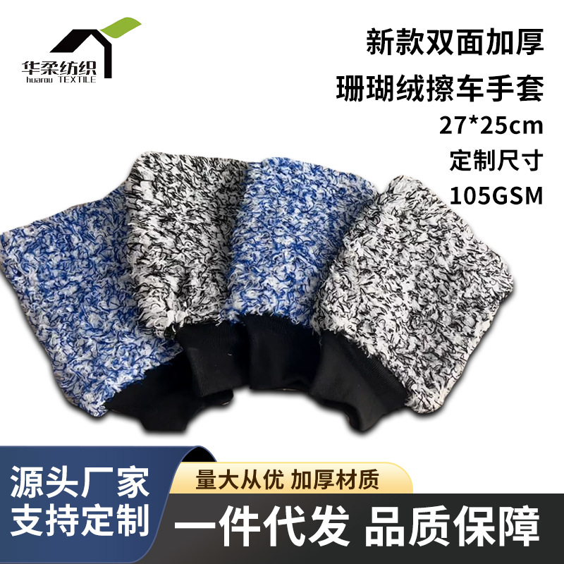 新商品の両面に厚い長さの短いベルベットのベルベットの車の手袋の細い繊維の清潔な洗車道具の熊手の卸売り