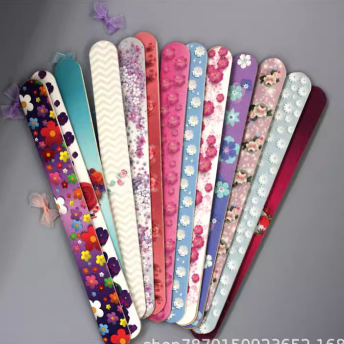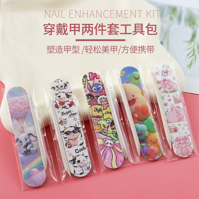 甲の道具を身につけて、2セットの木の棒をつけて、木の皮の薄いやすりのかわいい模様のやすりのネイルツールをつけます。