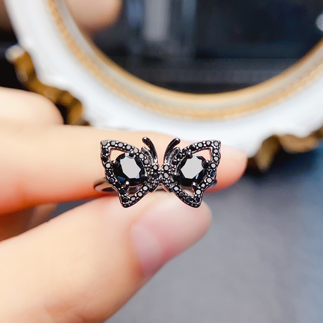 新しいナチュラルブラックスピネルリング S925 シルバー象嵌メインストーン 4*5 ミリメートル多用途インターネットセレブホットスタイル女性ジュエリー卸売