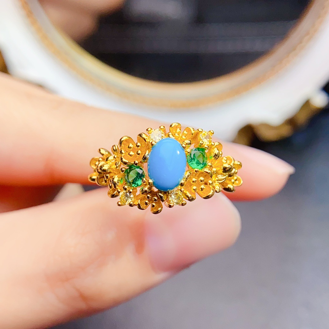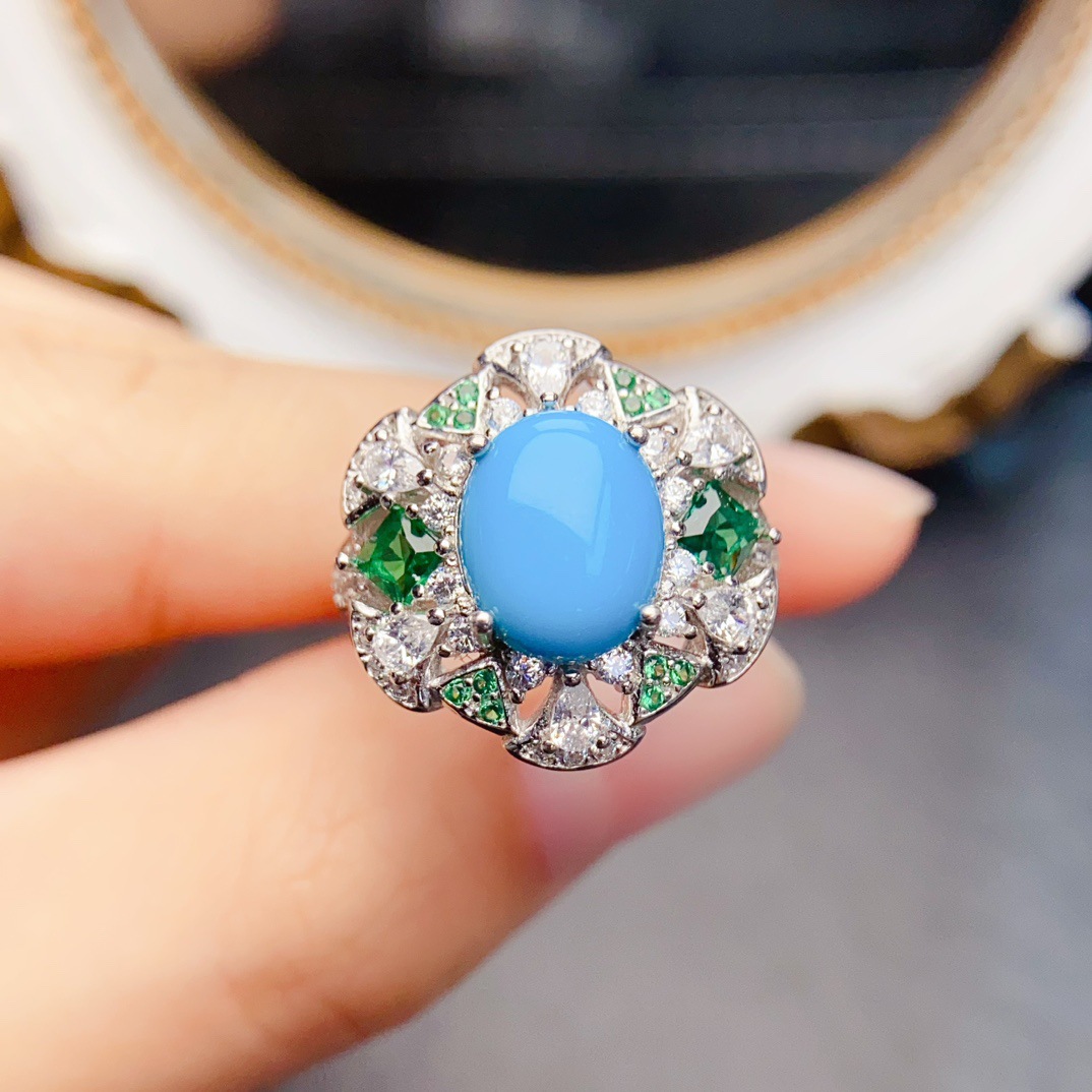 新しいナチュラルビューティーパインリング S925 シルバー象嵌メインストーン 8*10 ミリメートル多用途インターネットセレブホットスタイル女性ジュエリー卸売