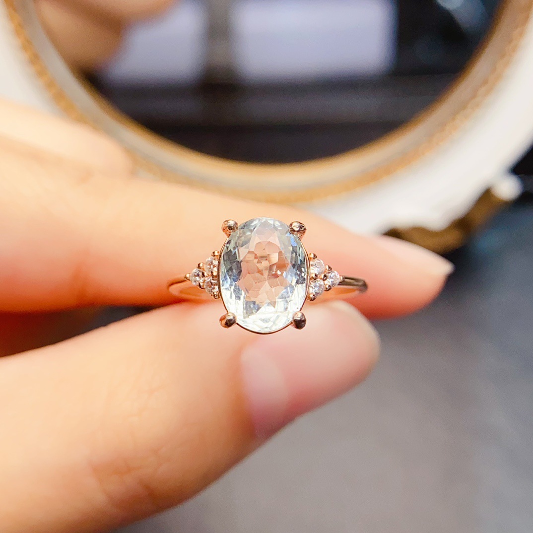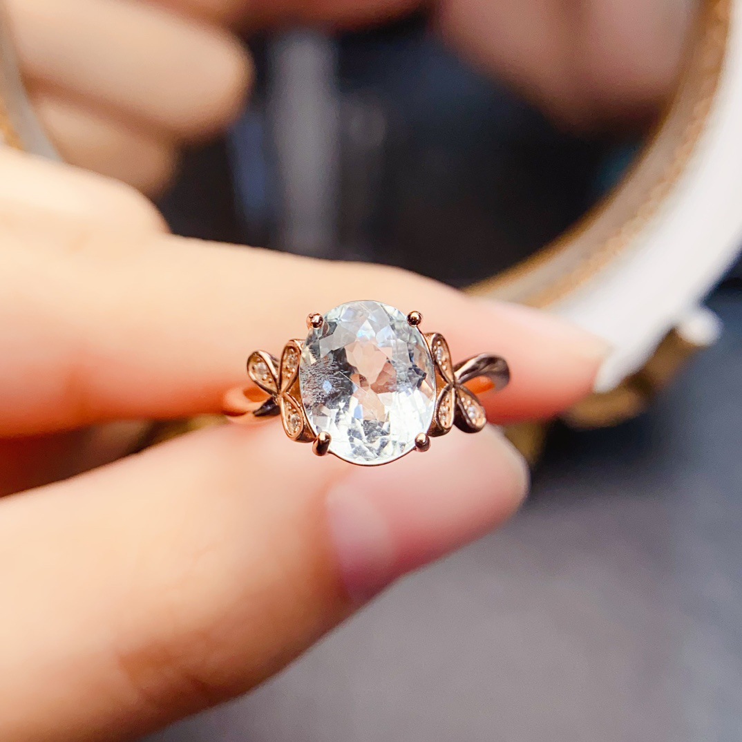 新しい天然アクアマリンリング S925 シルバー象嵌メインストーン 8*10 ミリメートル多用途インターネット有名人ホットスタイル女性ジュエリー卸売