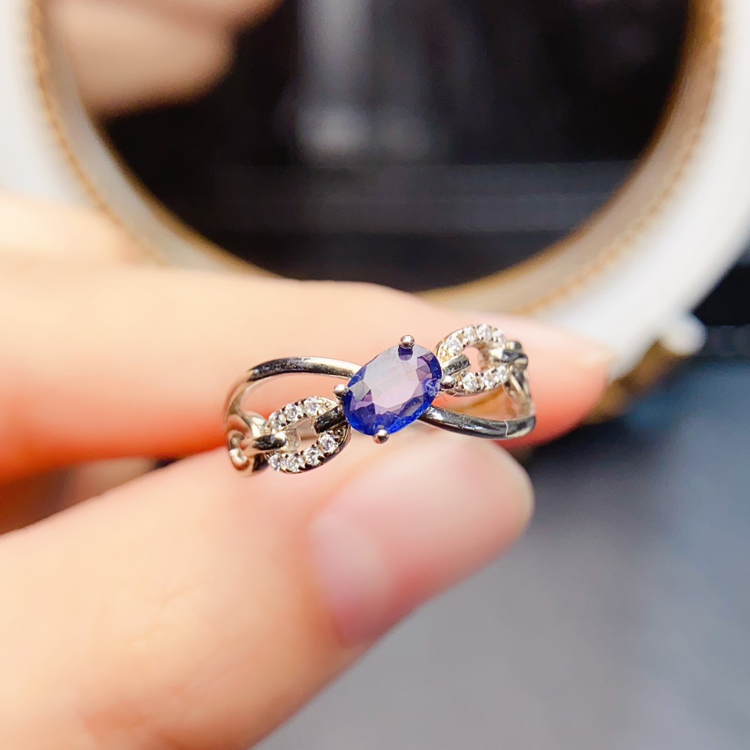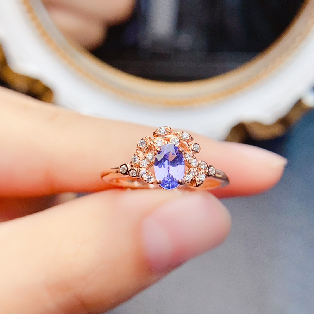 新しい天然タンザナイトリング S925 シルバー象嵌メインストーン 4*6 ミリメートル多用途インターネットセレブホットスタイル女性ジュエリー卸売