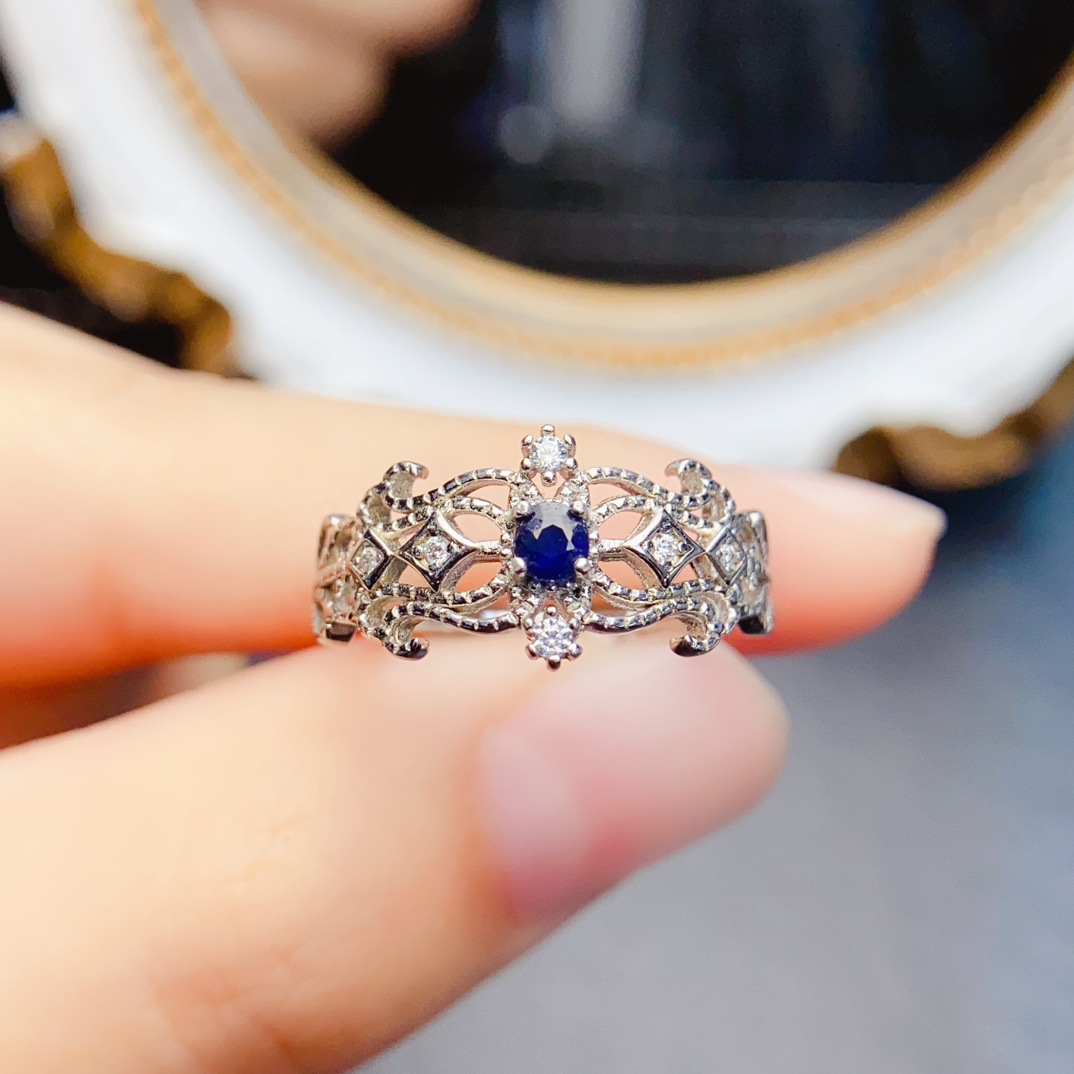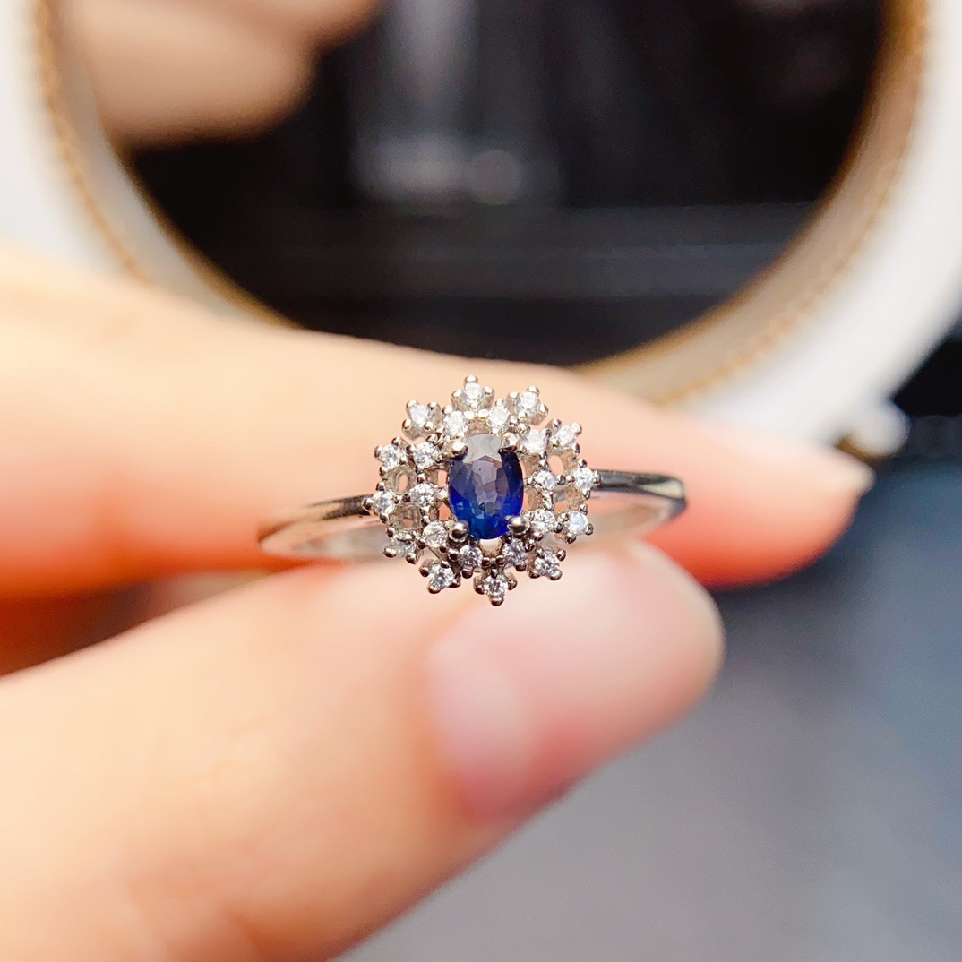 新しい天然サファイアリング S925 シルバー象嵌メインストーン 3*4 ミリメートル多用途インターネット有名人ホットスタイル女性ジュエリー卸売